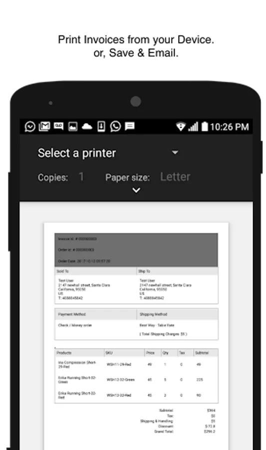 * Invoices. View and Print from mobile (only with Magento 2.x)