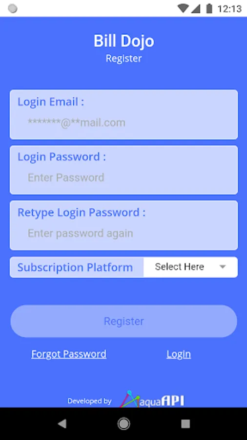 A one-time registration with the app is required to authorize with your recurring billing platform. Refer to the help on the login screen for specific instructions for the same.