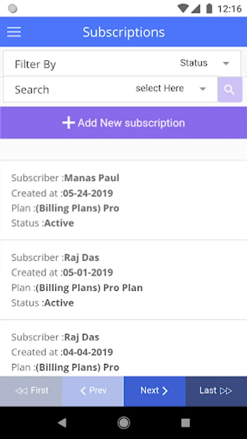 Subscriptions: Search and/or filter through Subscriptions. Add new subscriptions or modify existing ones.