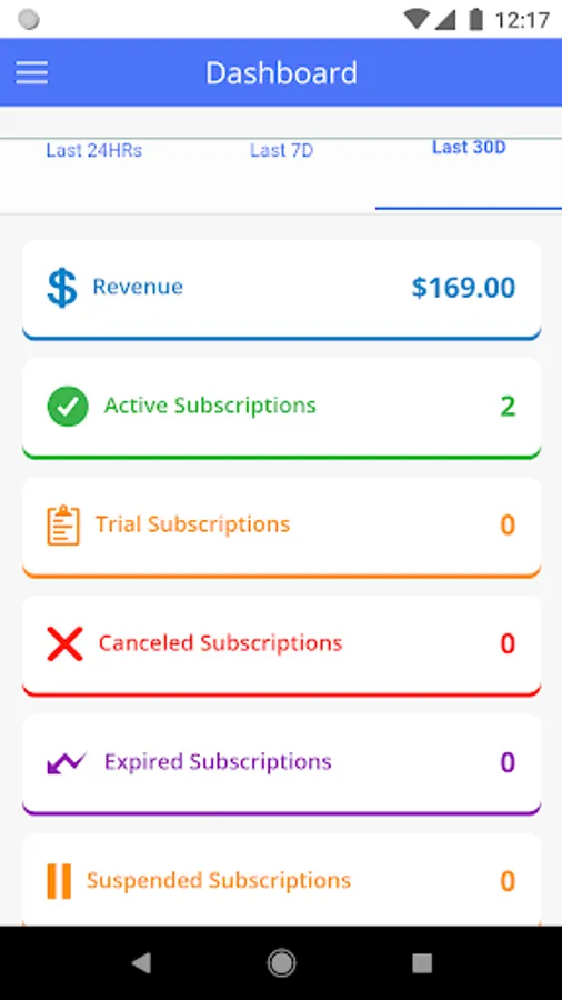 Dashboard: View Active, Cancelled and Expired Subscriptions for last 24 hrs, 7 days and 30 days.