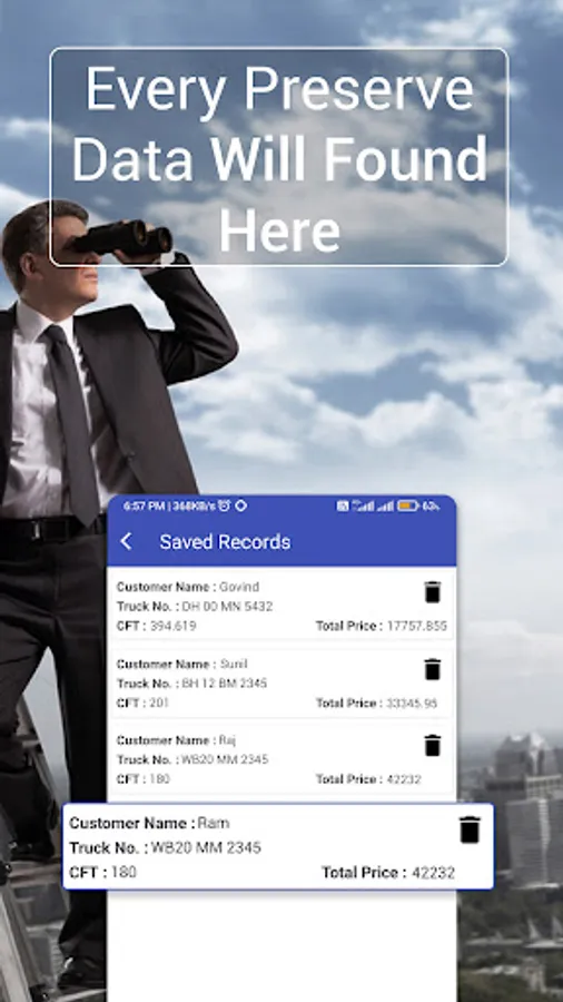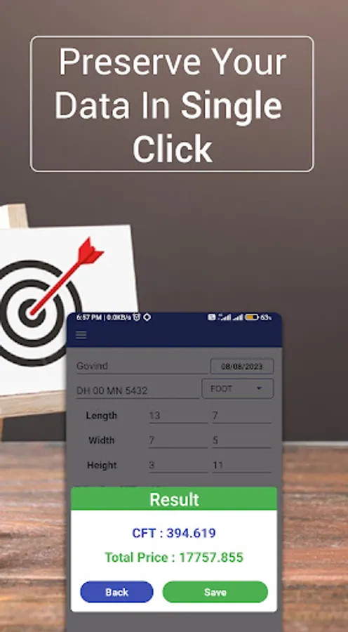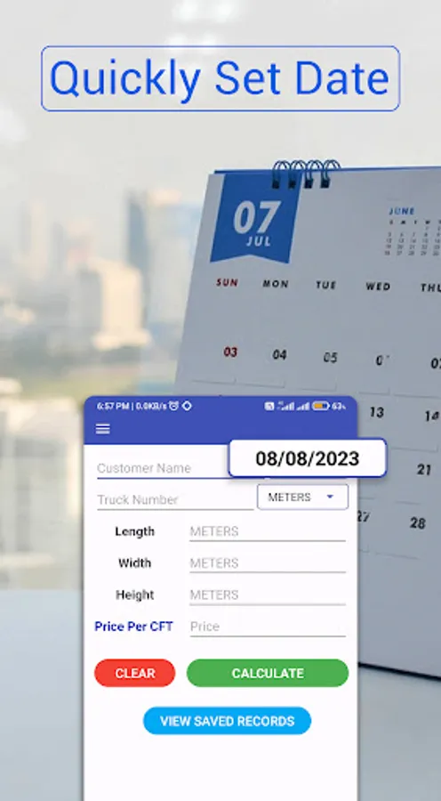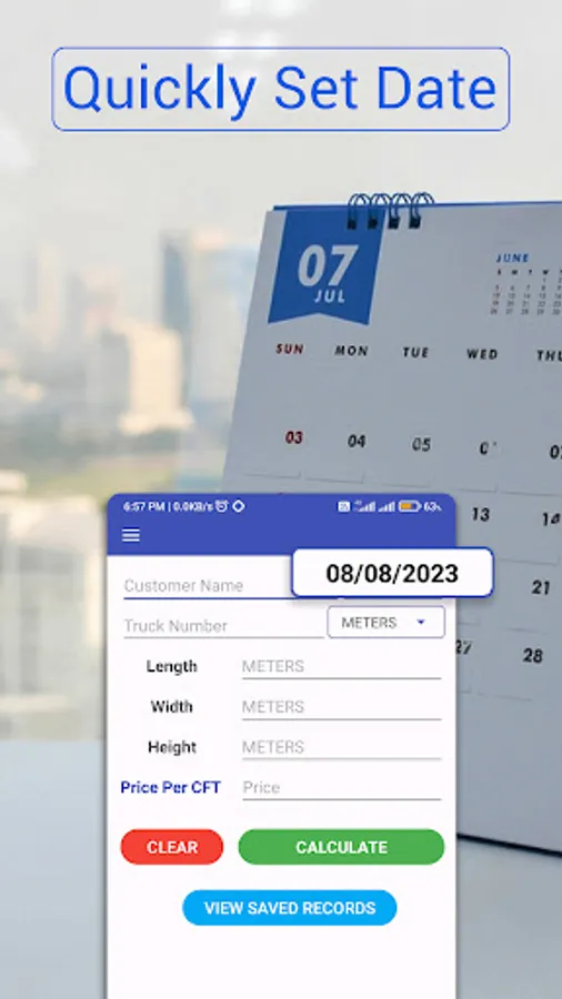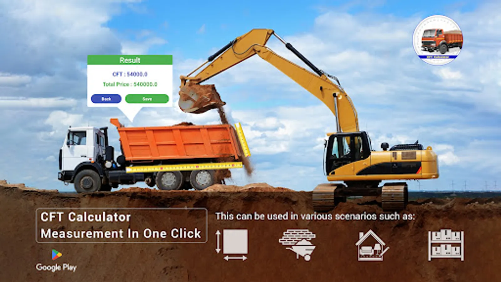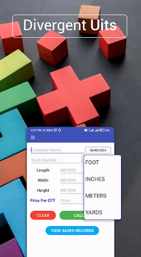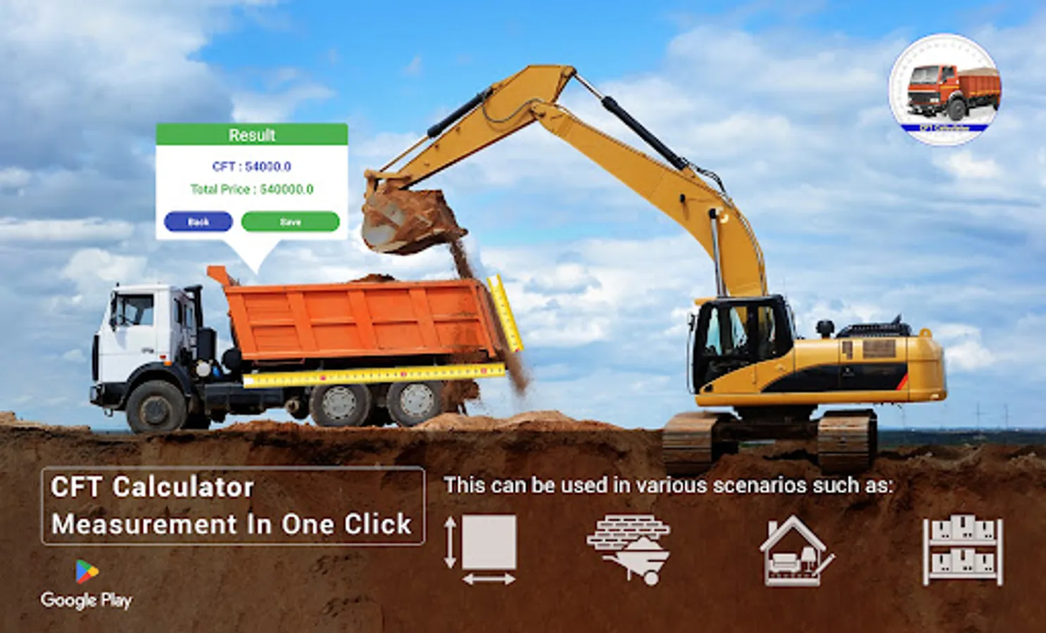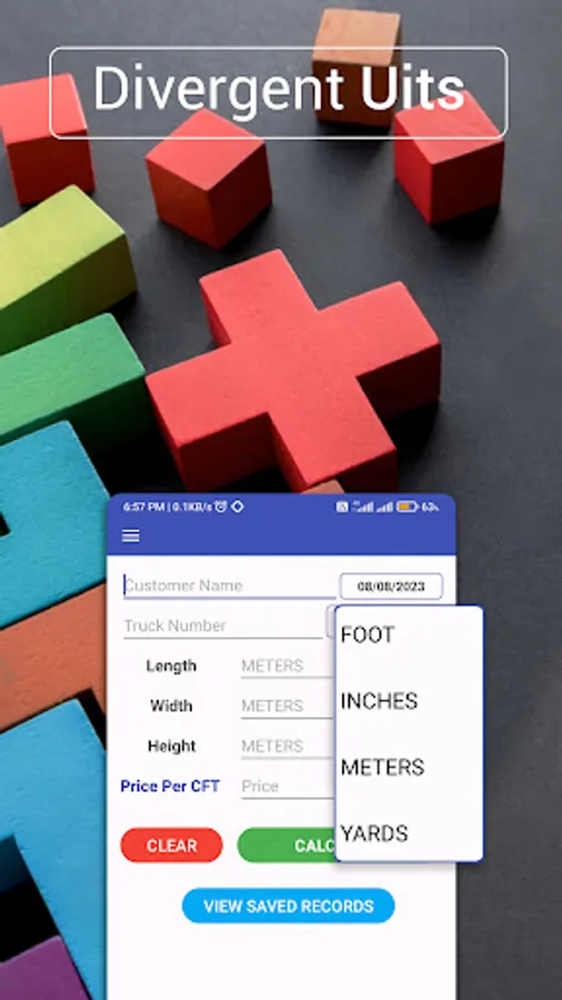 Use the CFT Calculator app to easily calculate cubic feet in four different ways. Save your calculations on your phone and access them anytime using the customer's name. All four metric units are available on a single page, neatly organized under a dropdown menu.
