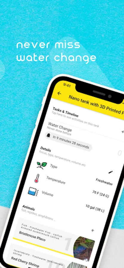 Get notified with a push notification when you set up recurring tasks. Get notified for regular water change or an important treatment for your fish and/or tank.