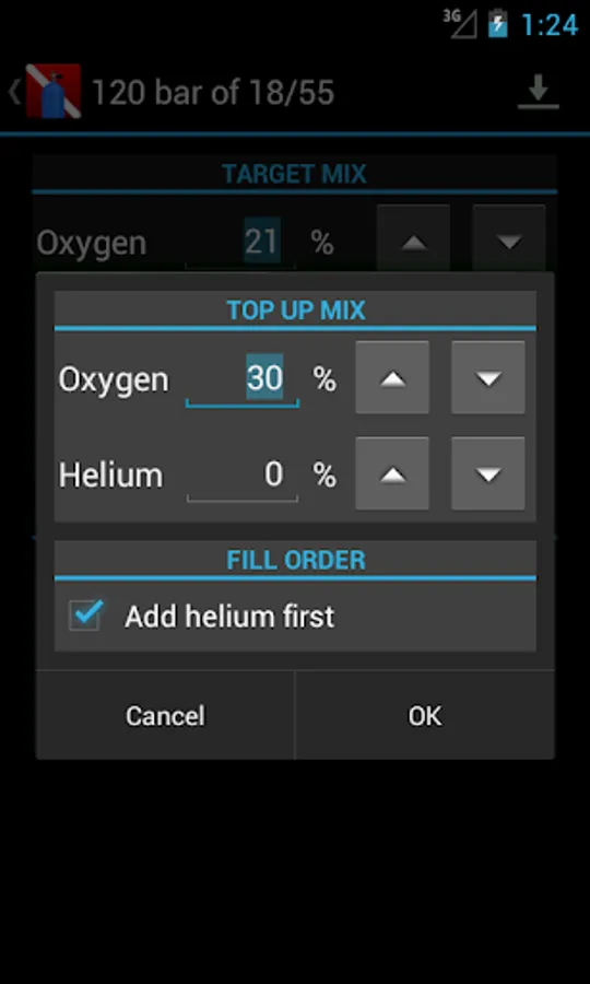 Fill order and top up gas for partial pressure mixing can be specified in application settings.