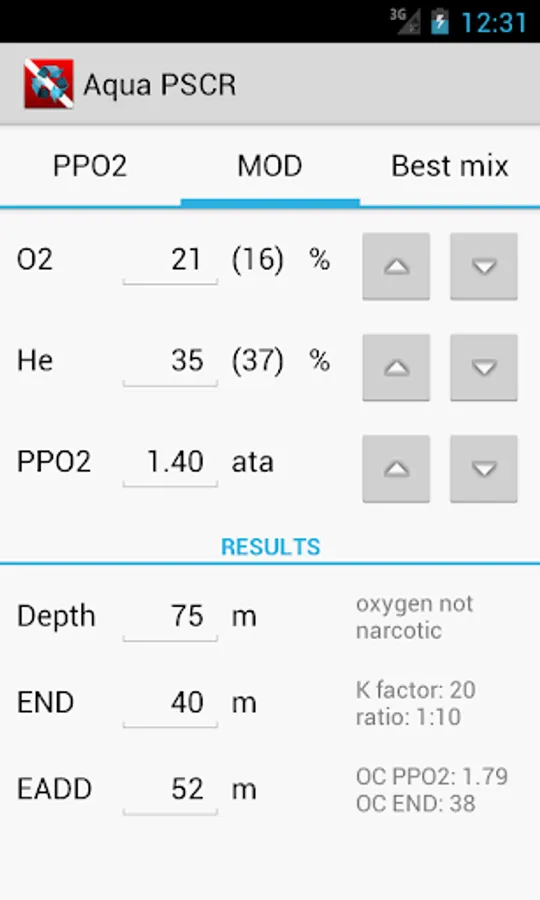 Aqua PSCR is a Passive Semi Closed Rebreather gas calculator based on Dalton's law. Aqua PSCR can be used for gas mixes containing nitrogen, oxygen (nitrox) and helium (trimix, heliox).