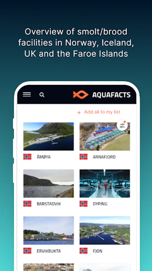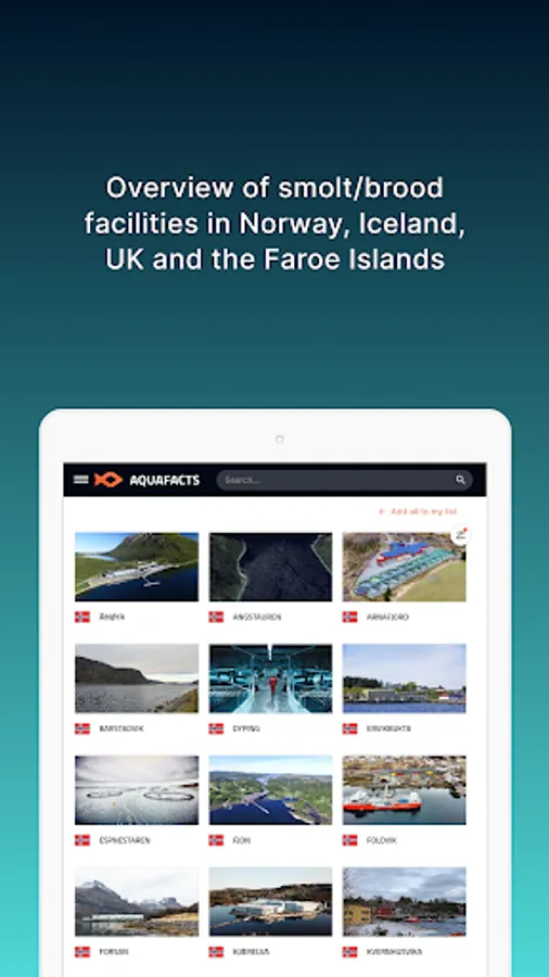 Aquafacts provides you with an overview of fish farms, smolt locations and brood facilities in Norway, Iceland, the United Kingdom and the Faroe Islands.