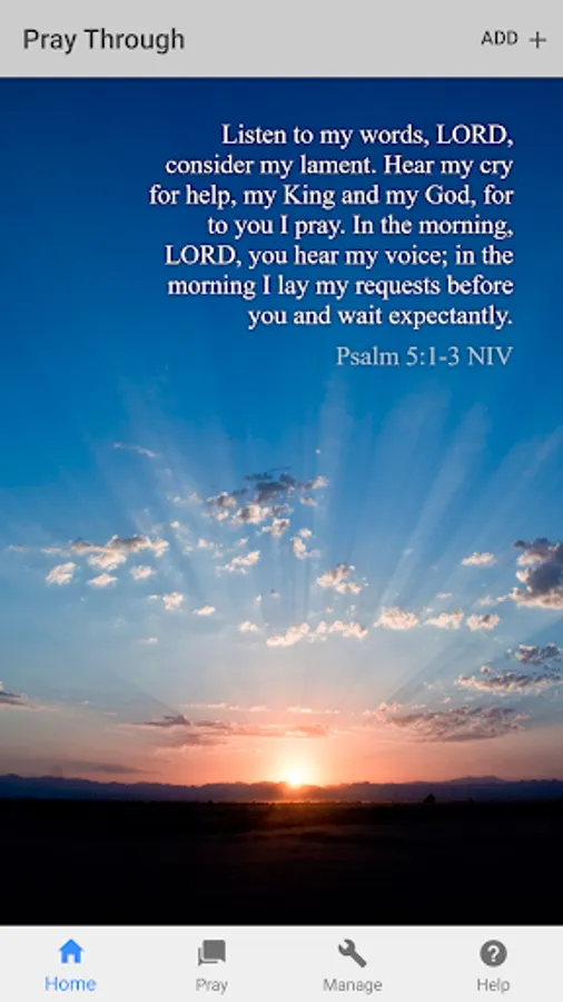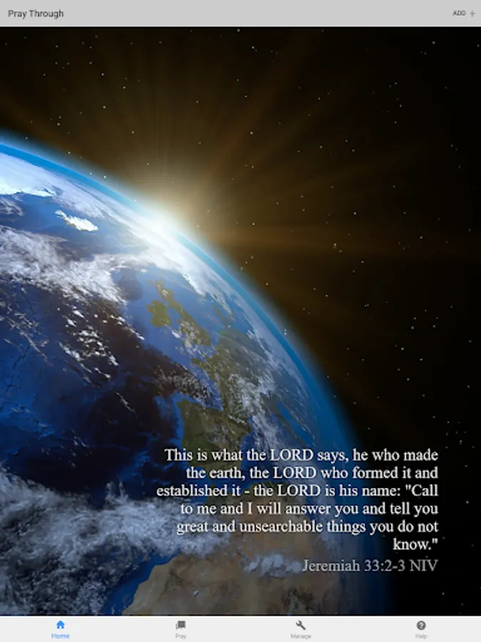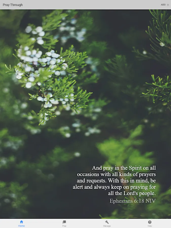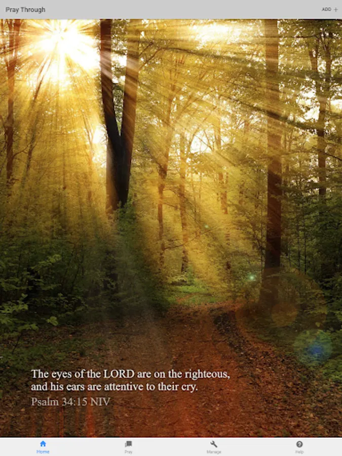 The Pray Through app is designed to help you have effective prayer times. It will help you PRAY THROUGH a comprehensive prayer list by breaking it up into manageable prayer times. Over time, you will have prayed through the entire list in an efficient manner.