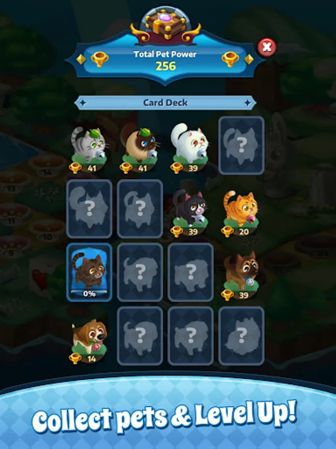 Help the cute pets and let them recover the garden together. If you clear the level together, the pets will level up!