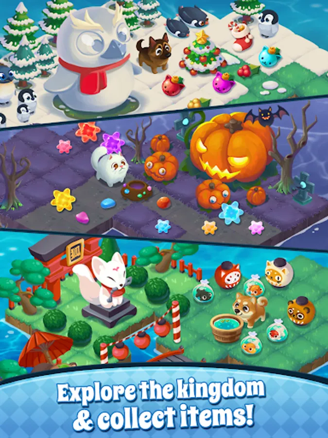 Enjoy a relaxing Tile match puzzle and recover your own miniature garden every day with countless buildings and new pets.