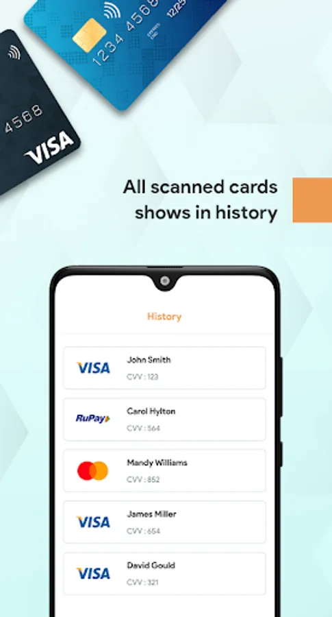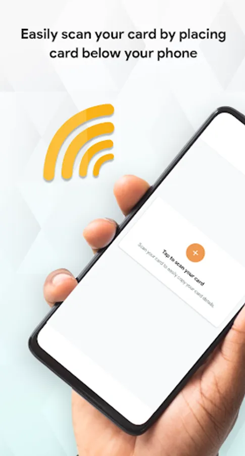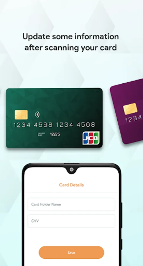 To use NFC Credit Card Reader, you have just to hold a credit card against the back of your device to read it. NFC credit card Reader detects the card number and card expiry date ,you can see in your mobile phone.