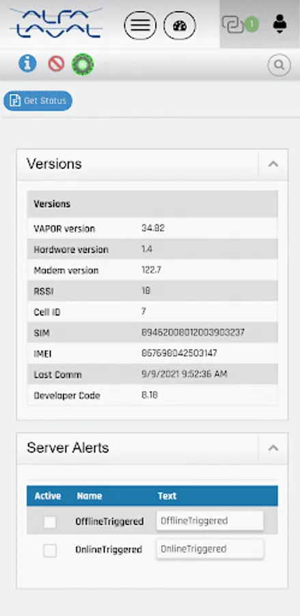 Remote monitoring and real-time access to Alfa Laval CM devices. Obtain full insight into how well the system is performing, if it is ready for operation. Easy access to digital data for testing, troubleshooting, and predictive analytics.