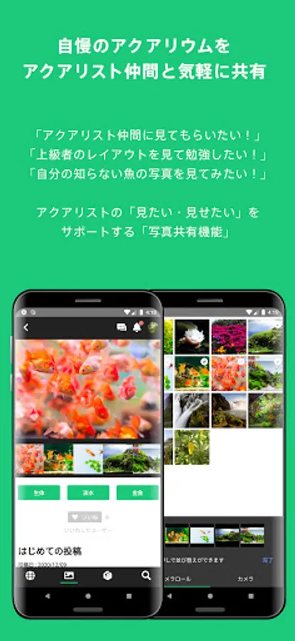 ・ Photo sharing function that fulfills "want to see / show" such as aquarium layout and living body designed by aquarist