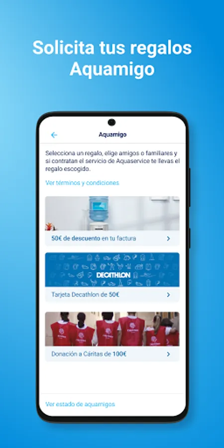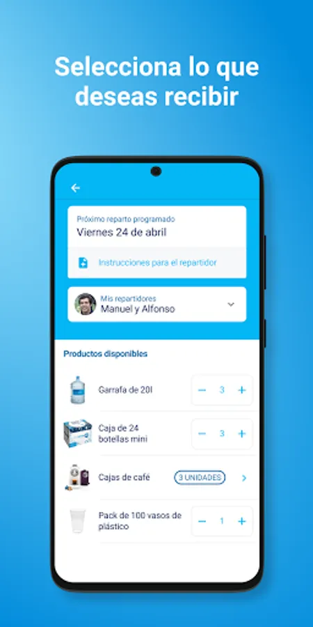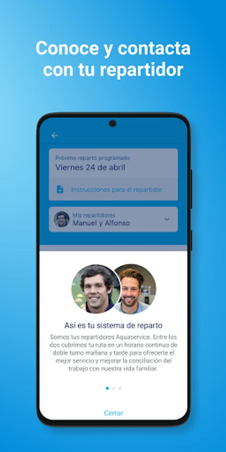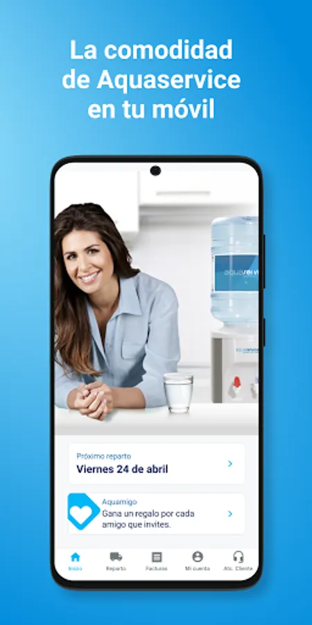 Aquaservice is the leading company in the distribution of natural mineral water and refreshing drink at home, with a dispenser, in Spain. True to the philosophy of offering a comfortable service, we have updated our free application to allow you to manage all your water and coffee service from your mobile in a more functional and attractive way.
