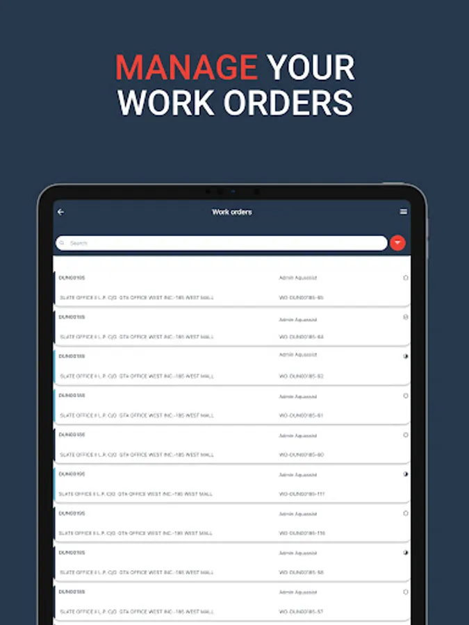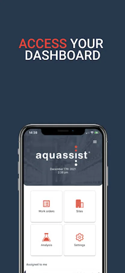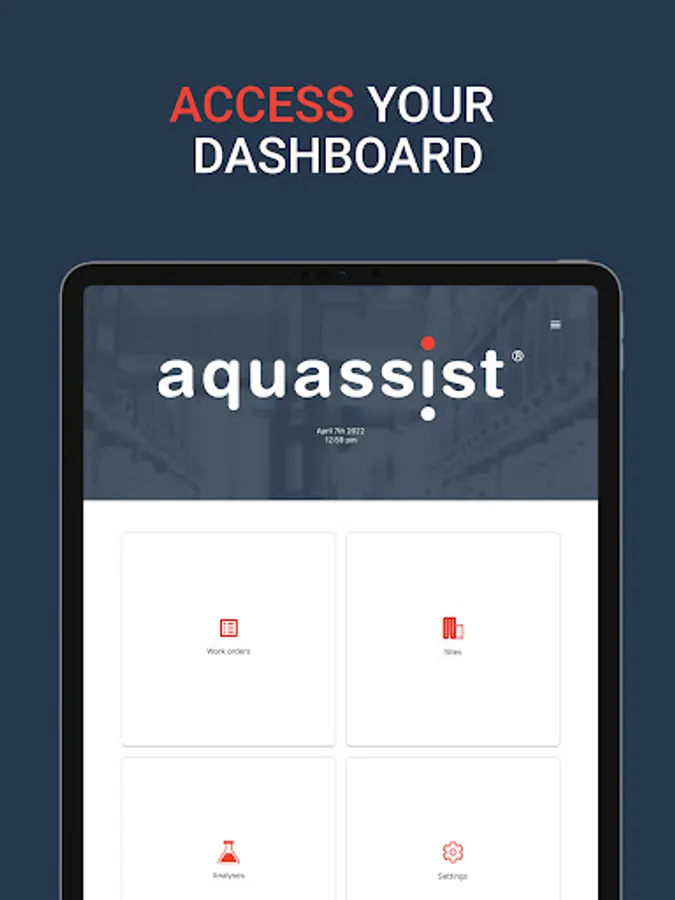 Aquassist is a companion app for field service operations. From this app, you can create new work orders at your customer site, gather analytical data and produce reports.