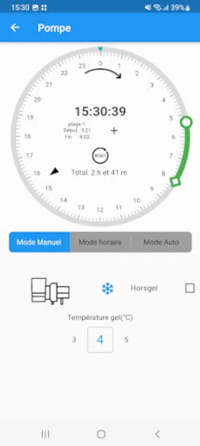 interface that allows you to manage the filtration and lighting of the swimming pool through the jcontrol equipment
