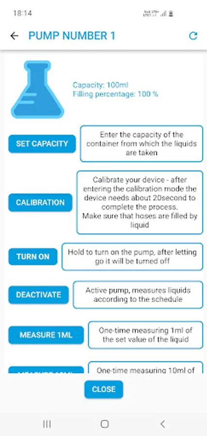 - Fluid consumption monitoring: Function that will always let you know when to refill your bottles with dosed liquids.