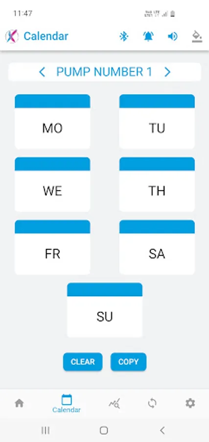 - Scheduler: A comprehensive graph that allows you to easily program the release of doses from each of the five pumps. Well thought-out options for copying and transferring settings, mean that programming the operation of all pumps takes only a few minutes.