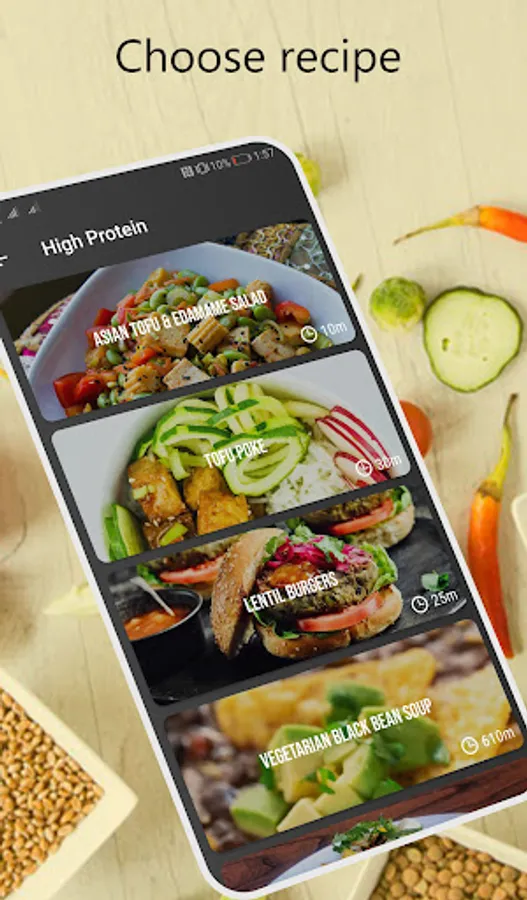 Healthy food recipes app offers you many healthy recipes. These include breakfast recipes, lunch recipes, dinner recipes, chicken recipes, beef recipes, fish recipes, salad recipes, soup recipes and dessert recipes.