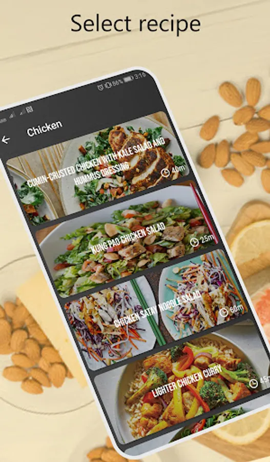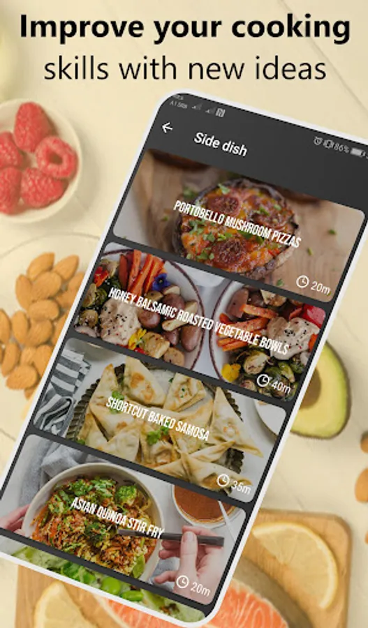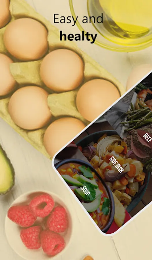 🏋️The recipes are categorized in breakfast, lunch, dinner, chicken, fish, beef, side dish, soup, salad, and snack categories. Each category has 20 top quality recipes.