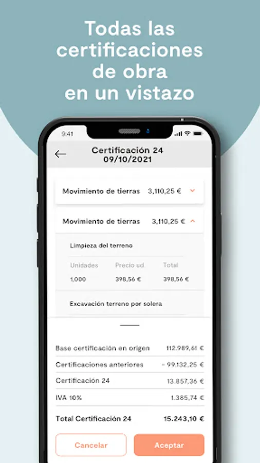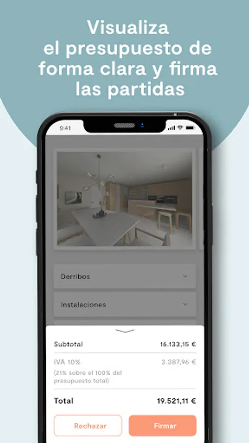 In the Aquí tu Reforma App you will also be able to consult the budget of your reform, the different items and request changes, which will be reflected directly in the App, providing complete protection for the license and for the client who carries out the reform. A comfortable, digital and safe way to manage your reform.