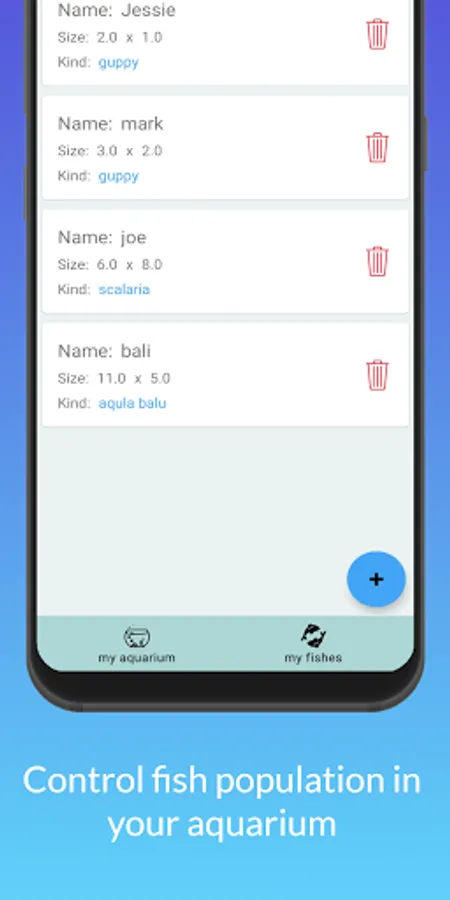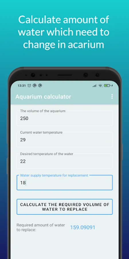 Change the specific amount of water to maintain a comfortable temperature for your fish - and Aquarium calculator will help you. Also you can use our app to control fish population.