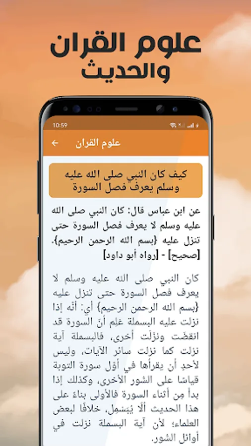 Sciences of the Noble Qur’an and Sciences of Hadith: The application provides detailed information about the sciences related to the Holy Qur’an and the sciences of the Prophet’s hadith.