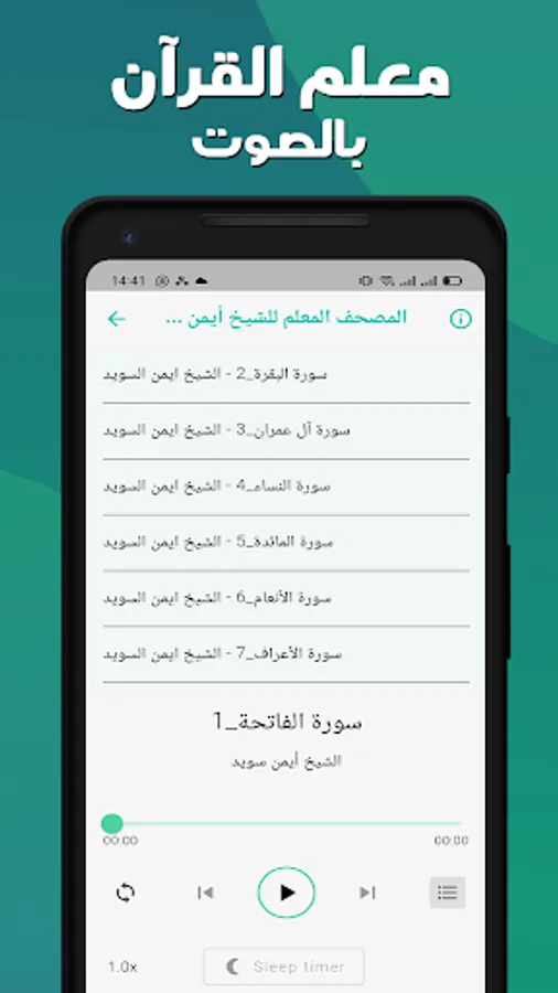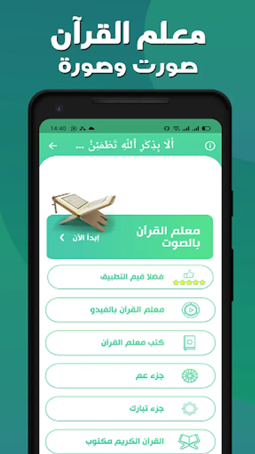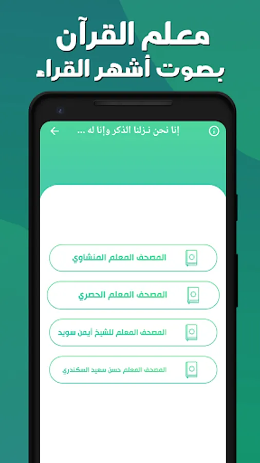 The application works distinctively to learn the teacher of the Noble Qur’an with the voice of Sheikh Al-Hosari