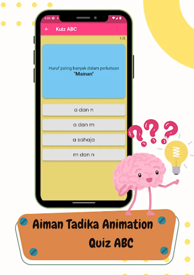 AQ Wise's Aiman Tadika App is an educational tool for kids' knowledge development. The program's primary objective is to provide a firm foundation for further study in these critical areas, and the application's engaging animations help to achieve this goal. Aiman Tadika helps children develop their minds, laying the groundwork for a love of learning and a lifetime of discovery.