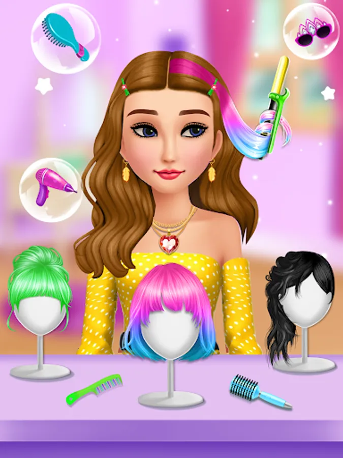 You can pick from models at a braided hair salon: hair parlour. Once you've made your choice, you can construct whatever hairstyle you like as a hair designer. You will be given a set of hairdresser's tools at the fashion hair spa, including hairdryers, curling irons, scissors, dryers, levelling irons, and other accessories. With just one touch of the screen, you may complete each task in these hair spa salon games. Complete freedom of movement: wash, blow-dry, cut, curl, and do a lot more to create the perfect, fashionable hairstyle for you. Become the best hair designer and beat out the competition in our fashion hair parlour and the modelling industry.
