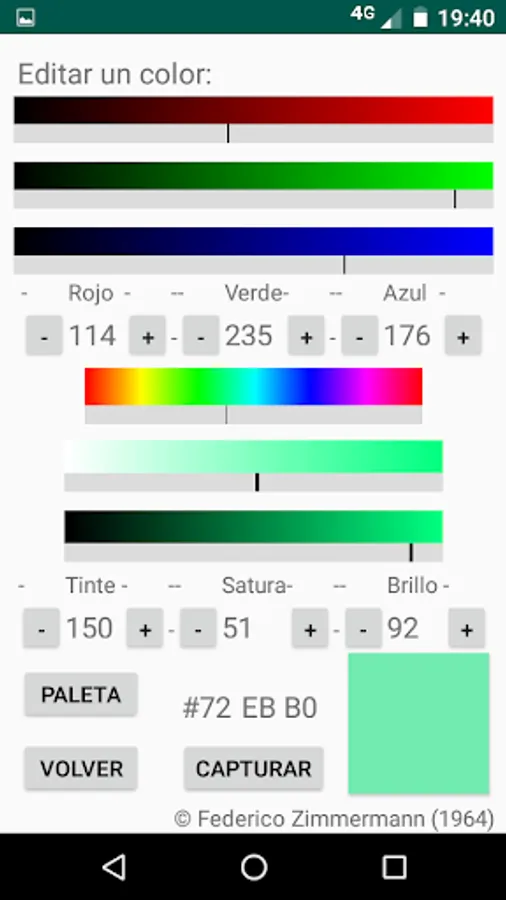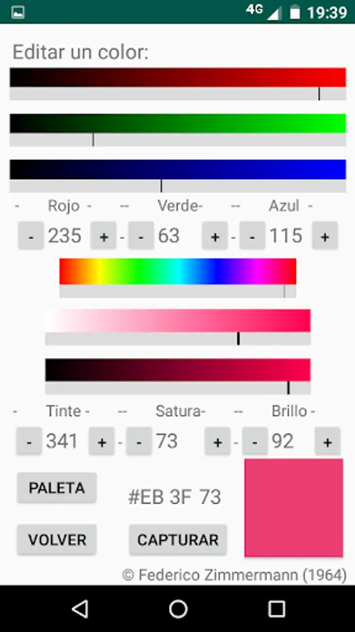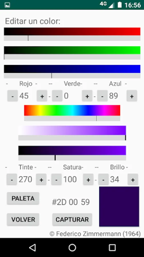 Each color can be edited by changing the amounts of red, green, blue, hue, saturation, and brightness. You can also choose color from a web color palette.