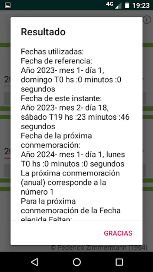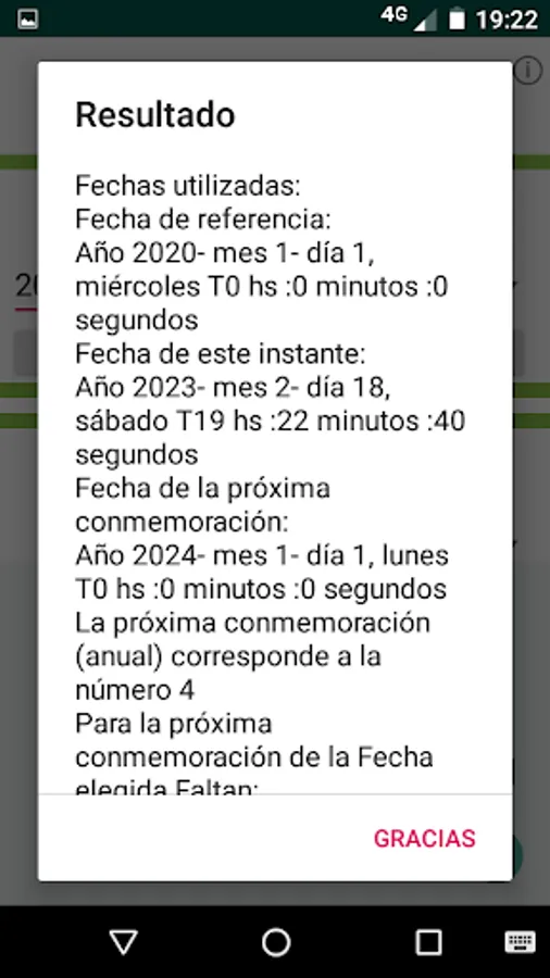 This app also allows you to obtain, given a date, the next commemoration regarding the current date (countdown or additive) and the distance to it.