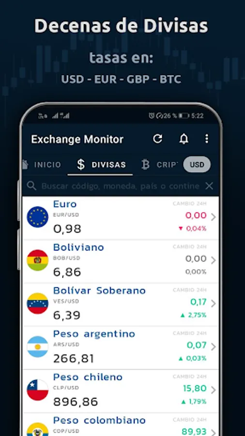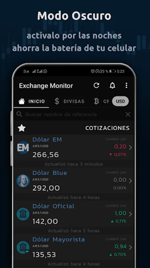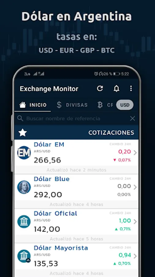 ⭐ Information search and filtering options for faster consultation, in addition to calculating all the rates in the currency you prefer: dollar, euro, pound, bitcoin or any currency that is listed in the system (UNIQUE option only in Exchange Monitor Argentina ).