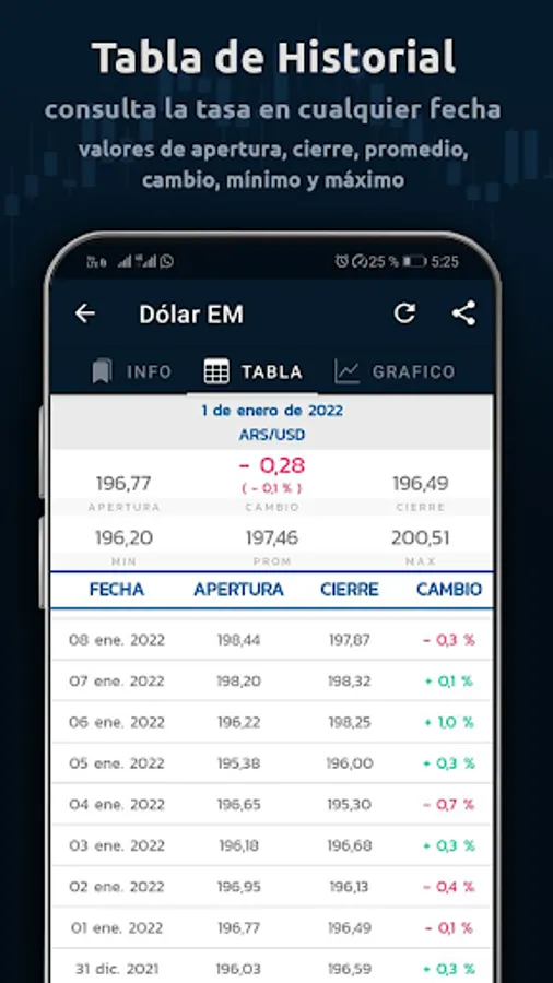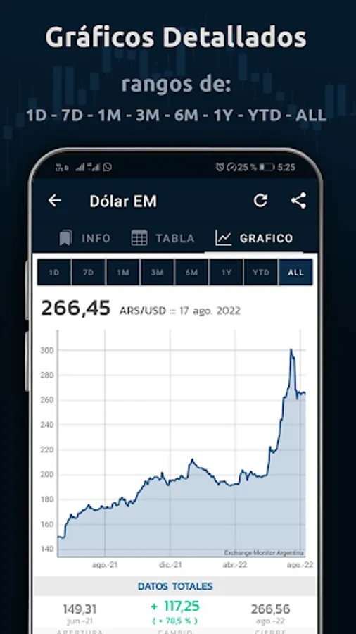 ⭐ Know the daily history and detailed graphs of any reference (dollar in Argentina, currency or cryptocurrency) in an interactive interface that allows you to quickly visualize the required rate or reference in a short time.