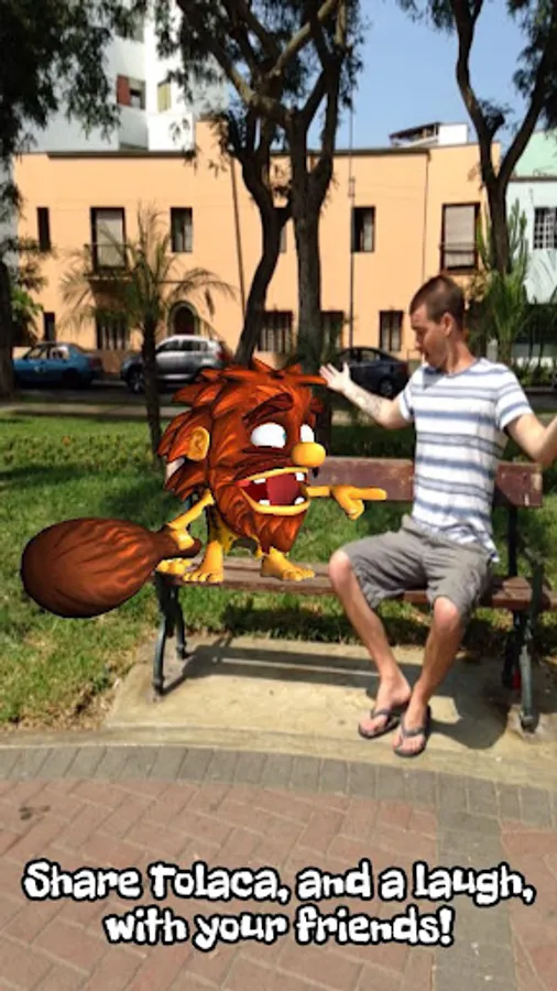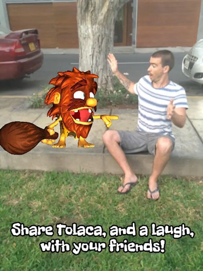 Take a picture of a friend, a pet, or whatever catches your eye, and place Tolaca, the playful caveman, in the shot.