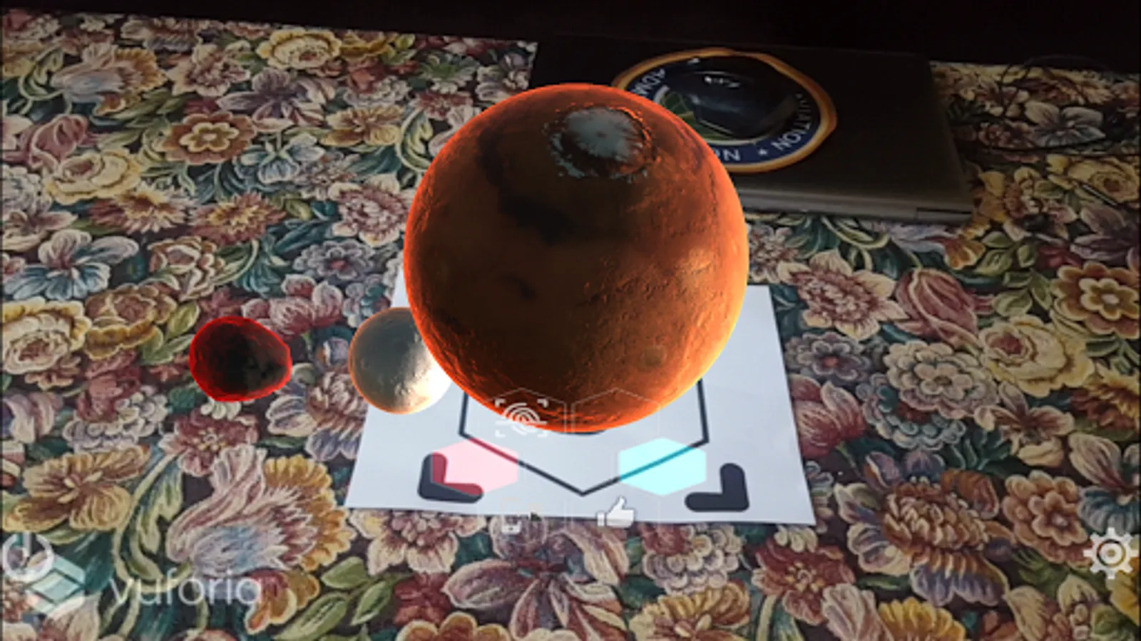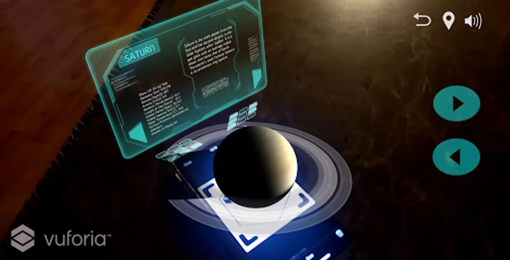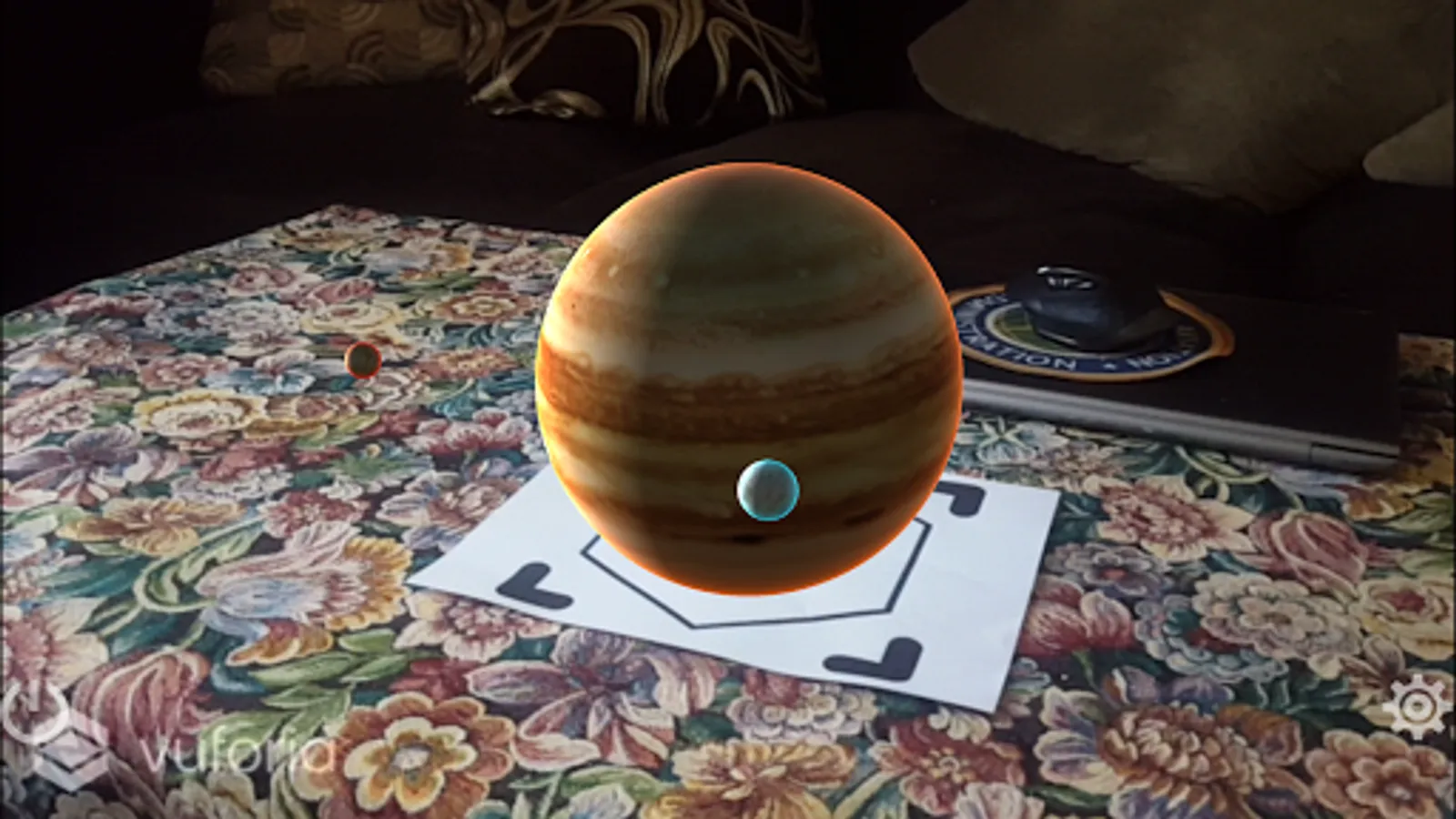 It is a virtual journey through space in our solar system, you will have the possibility to visualize with the new technology of Augmented Reality by each planet of our system and to learn of them like you never did before. Only with your phone or tablet.