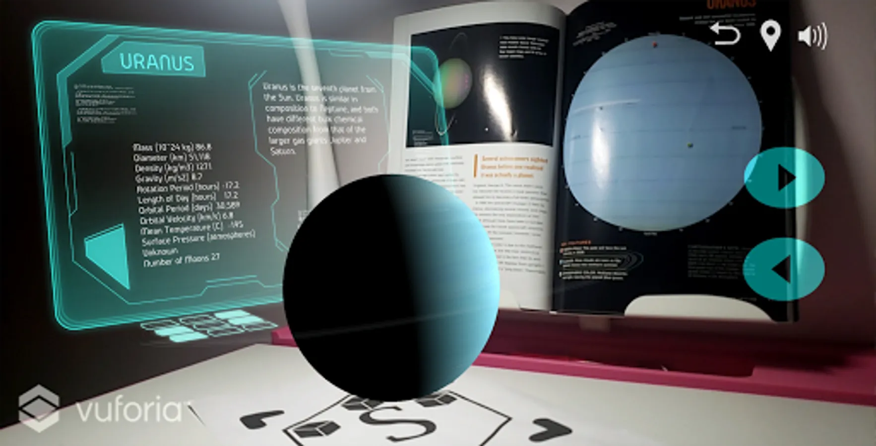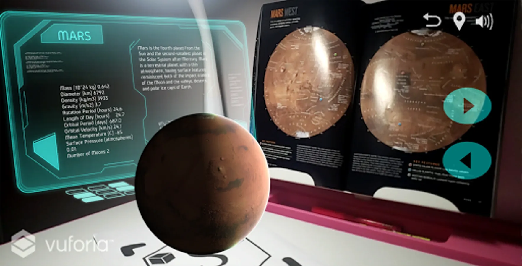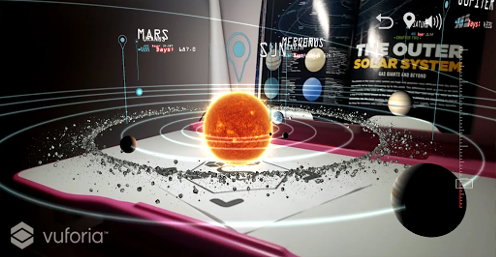 It is a virtual journey through space in our solar system, you will have the possibility to visualize with the new technology of Augmented Reality by each planet of our system and to learn of them like you never did before. Only with your phone or tablet.