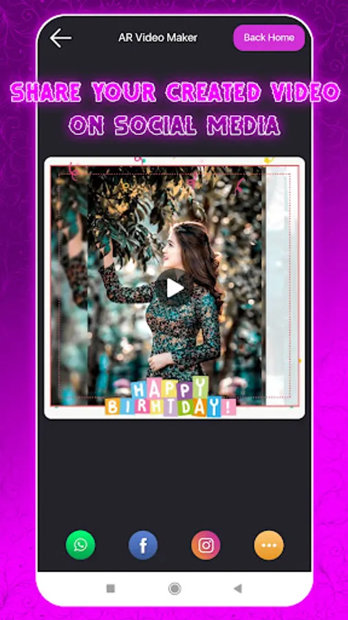 In AR Video Maker Slideshow Maker of photos with song you can also make your Instagram video and share it with your friends.