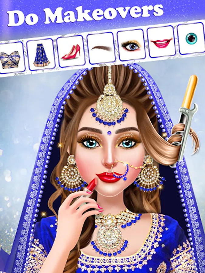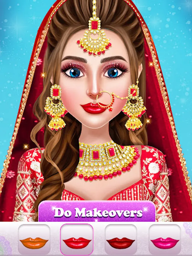 Discover the fusion of modern dress-up and wedding games with Indian wedding makeover as a fashion stylist. To match Indian brides' beauty and stylistic clothing attire on the wedding day, a group of girls dress up in a wedding makeover dress-up game. These wedding-themed dress-up and makeup games feature a multi level salon that includes a selection of offline dress-up and makeup games. Plan a real wedding party while playing activities that involve a beauty salon makeover in makeup games. Indian wedding makeover, royal wedding stylist, dress-up, and cosmetics games for females who love high fashion and designer clothing. Plan an Indian-style wedding by playing Global dress-up and wedding games. Using makeup, fashion wedding games turn the bride into a national diva. Be a bride fashion stylist to make the Indian brides the most pretty bride in fashion Indian wedding dress up and makeup games.
