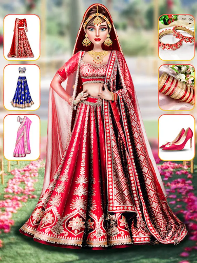 In a contemporary Indian wedding dress up & fashion games, plan the wedding of the bride's dreams and perform a wedding makeover. Playing Indian wedding dress-up games will help you have the wedding of your dreams. One of the tasks for fashion wedding games and a fashion stylist is to dress up the Indian brides for the Indian wedding makeover. Use your incredible wedding styling abilities to make the Indian bride princess look stunning in the dress up and makeup games for Indian weddings. By playing fantastic Indian wedding stylish dress up games, you may role-play as an Indian princess in real time. The Indian brides should dress up, apply makeup, and receive bridal best and a wedding makeover. You will spend hours playing wedding dress up games due to the offline levels of fashion games and dress up games with a fashion stylist.