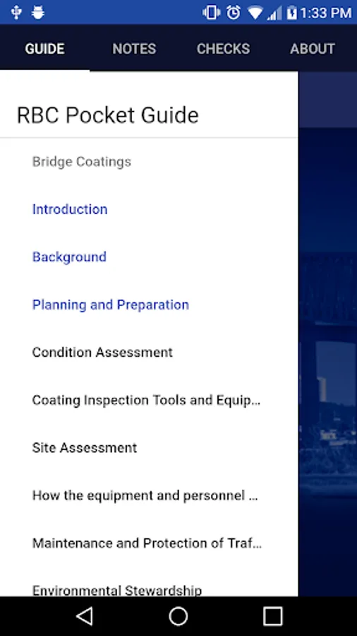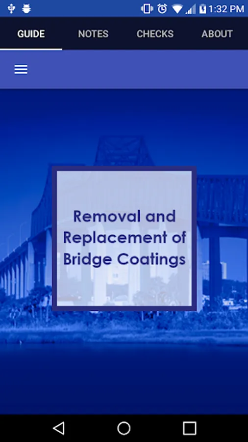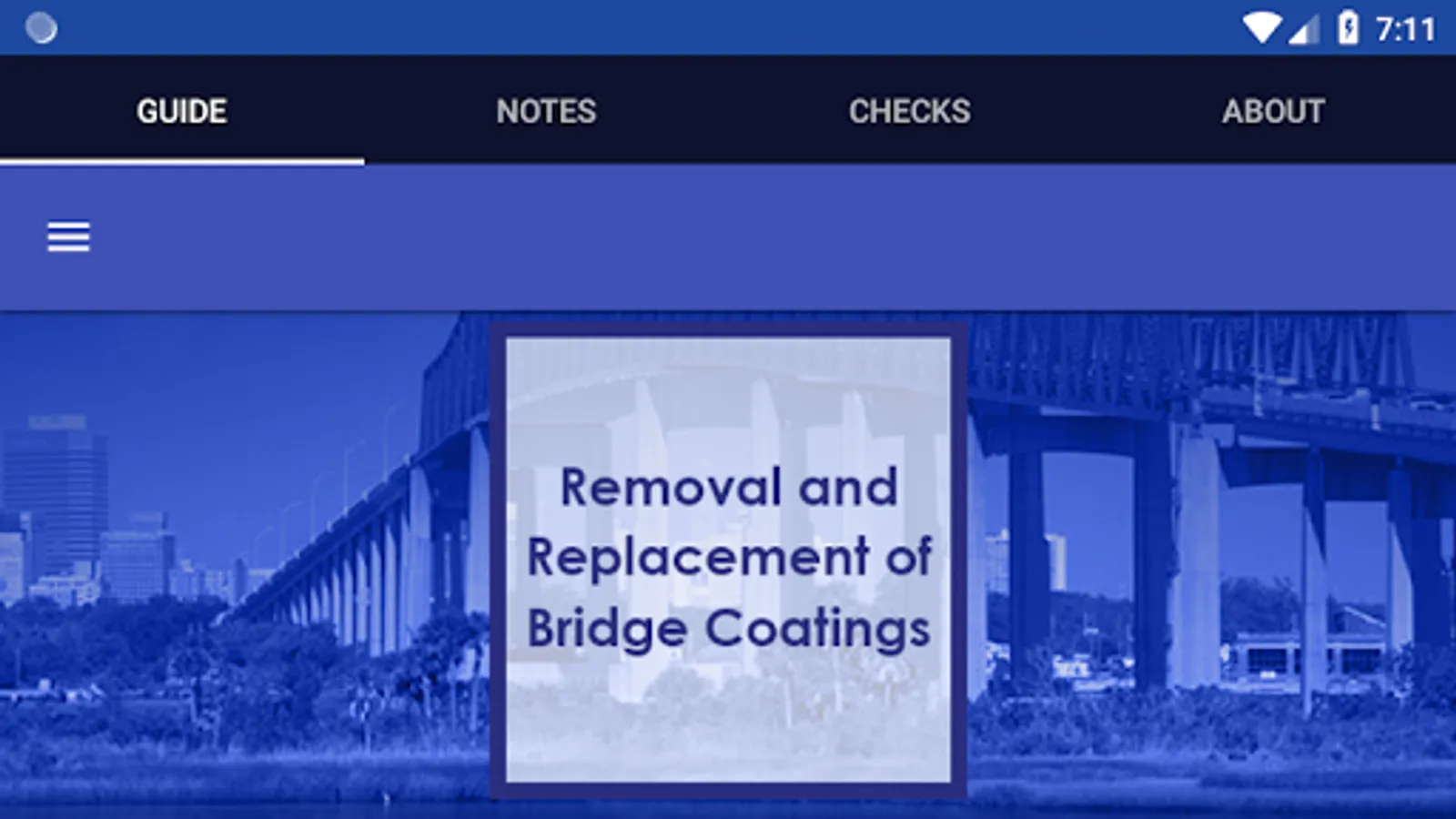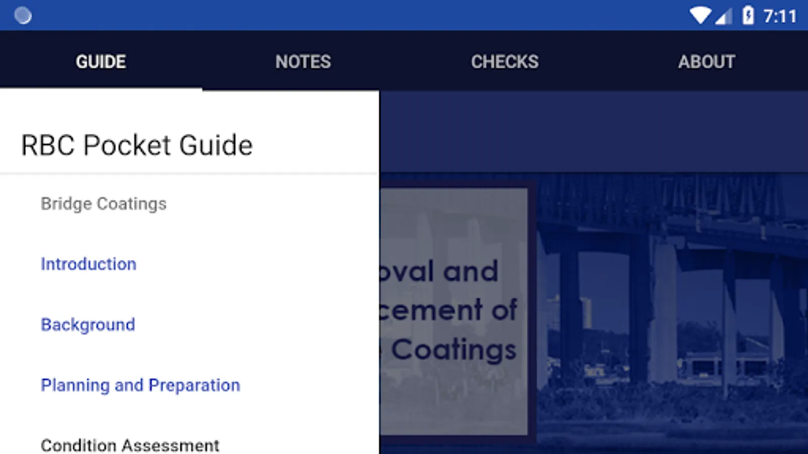 This app provides a better understanding of the process to remove and replace bridge coatings for the structural steel elements of bridges in service. The app describes how to plan and execute a coatings removal and replacement operation with an emphasis on the three primary activities of containment, surface preparation and painting. This app does not cover shop-applied coatings or spot-painting operations, however much of the information represents best practices for all bridge coating work.