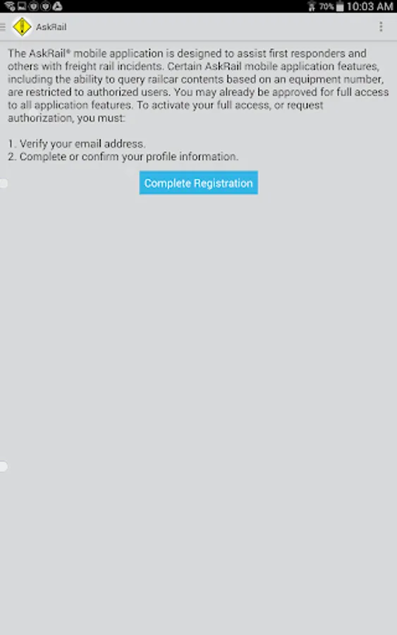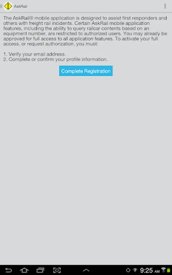 The AskRail app is a hazardous materials safety tool for first responders who are first on scene or directly support the first on scene in the event of a rail incident. Access to certain features, including the ability to query rail car contents based on an equipment number, is restricted to authorized personnel.