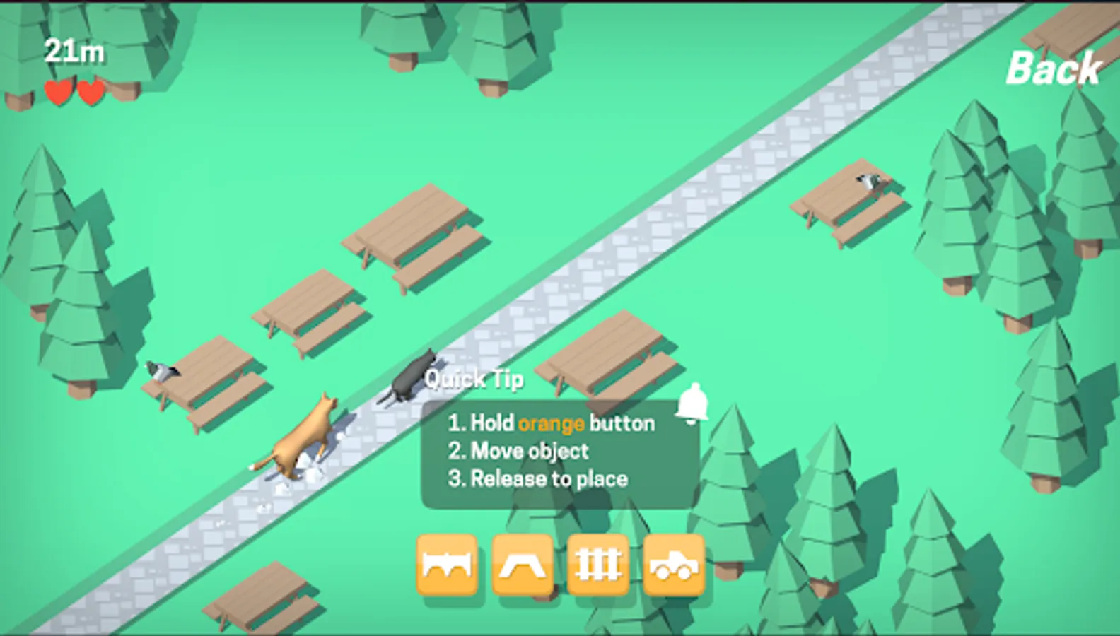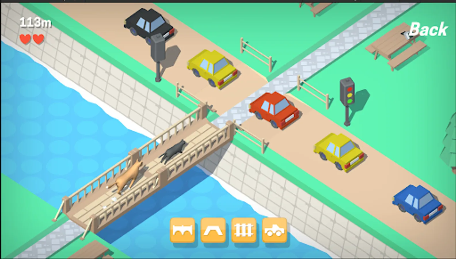 Pet Move Smart is a colourful endless runner game with a unique twist. Instead of controlling the animals, players place down bridges, cars, train tracks and viaducts to prevent the pets from getting hurt. The game is quite relaxed compared to other runner games, as it allows players to take as much time as they need to place down the correct item.