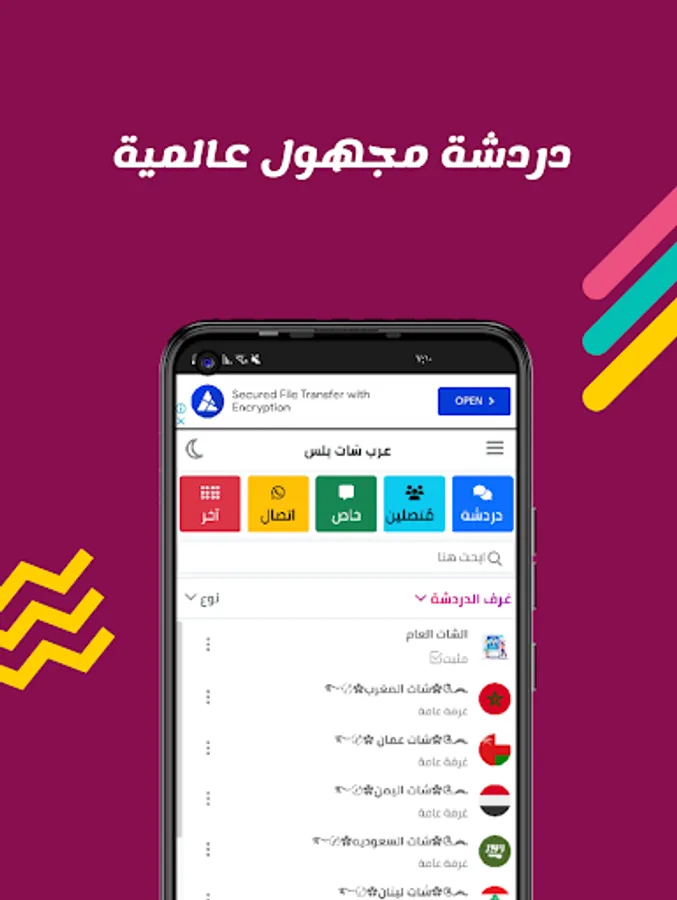 ودع الملل وحمل تطبيق دردشة وتعارف بنات وشباب واتس اب واستمتع بوقتك مع ألدردشة والتعرف على أصدقاء جدد من جميع أنحاء الوطن العربي