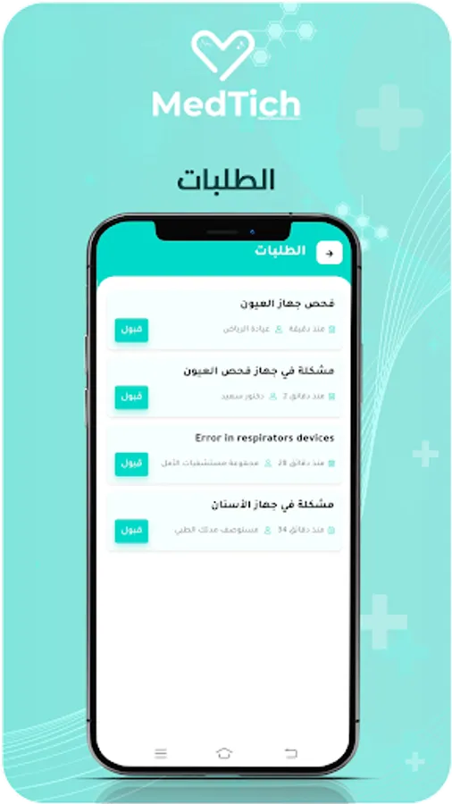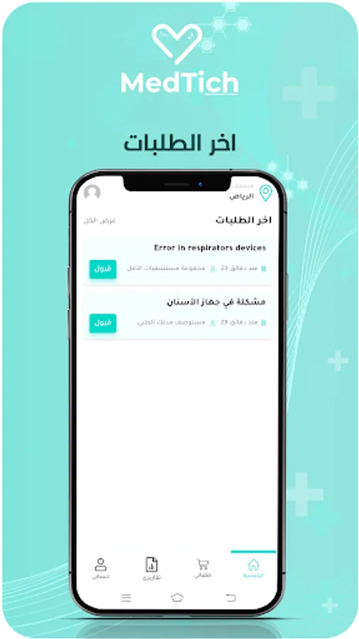 إذا كنت مهندس صيانة أو فني صيانة ولديك خبرة عالية في صيانة الأجهزة والمعدات الطبية قم بالتسجيل علي التطبيق واختار المدينة المتواجد فيها لاستقبال طلبات الصيانة علي الفور والتي ستظهر حسب موقعك