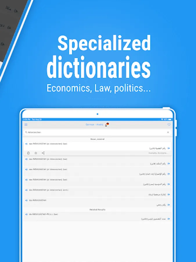 Get quick and reliable translations - with 6 arabdict Dictionaries and text translation for 6 languages.