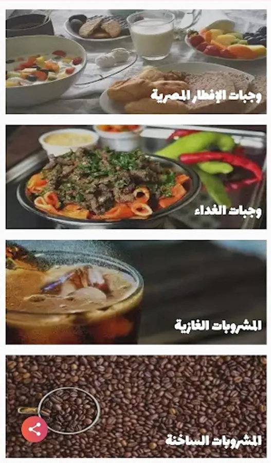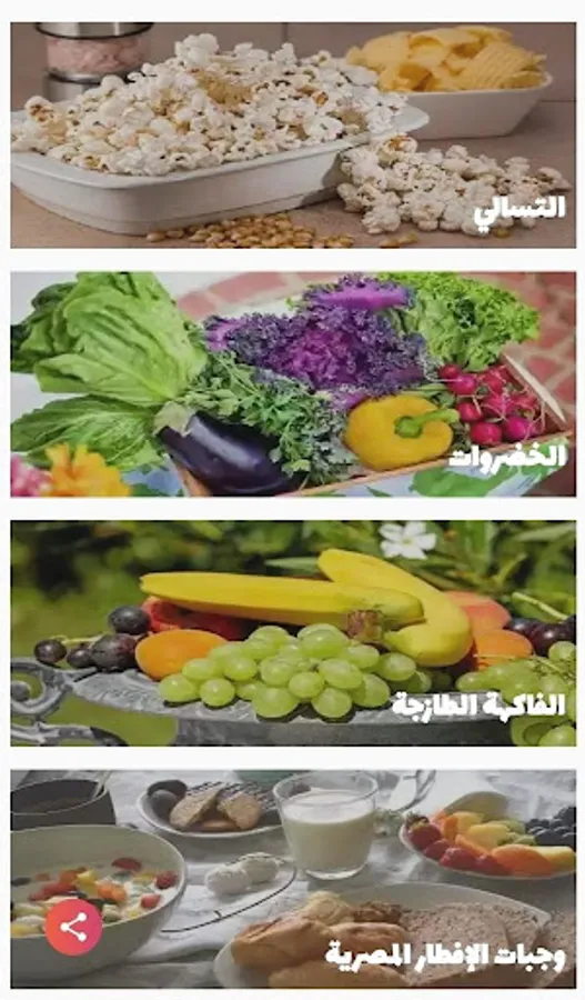 If you want to know the number of calories in egg food, for example, through the menus, then choose the Egyptian breakfast meals, which contain all kinds of Egyptian food, and you will find the type, for example, whether fried or boiled eggs, the quantity and the number of calories of that specific quantity, if you want to know the calories of bananas, apples, oranges, grapes, peach, watermelon , choose the list (fresh fruits) and you will find the full details, and so on, each food according to the list specified for it.