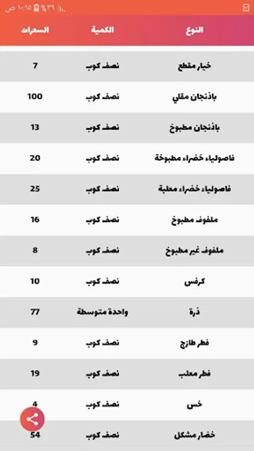 1. Knowing the amount of energy or calories found in the most popular types of foods and different foods through the lists that contain many classifications by type and quantity and how much price in that quantity in order to calculate your required calories from any food easily.