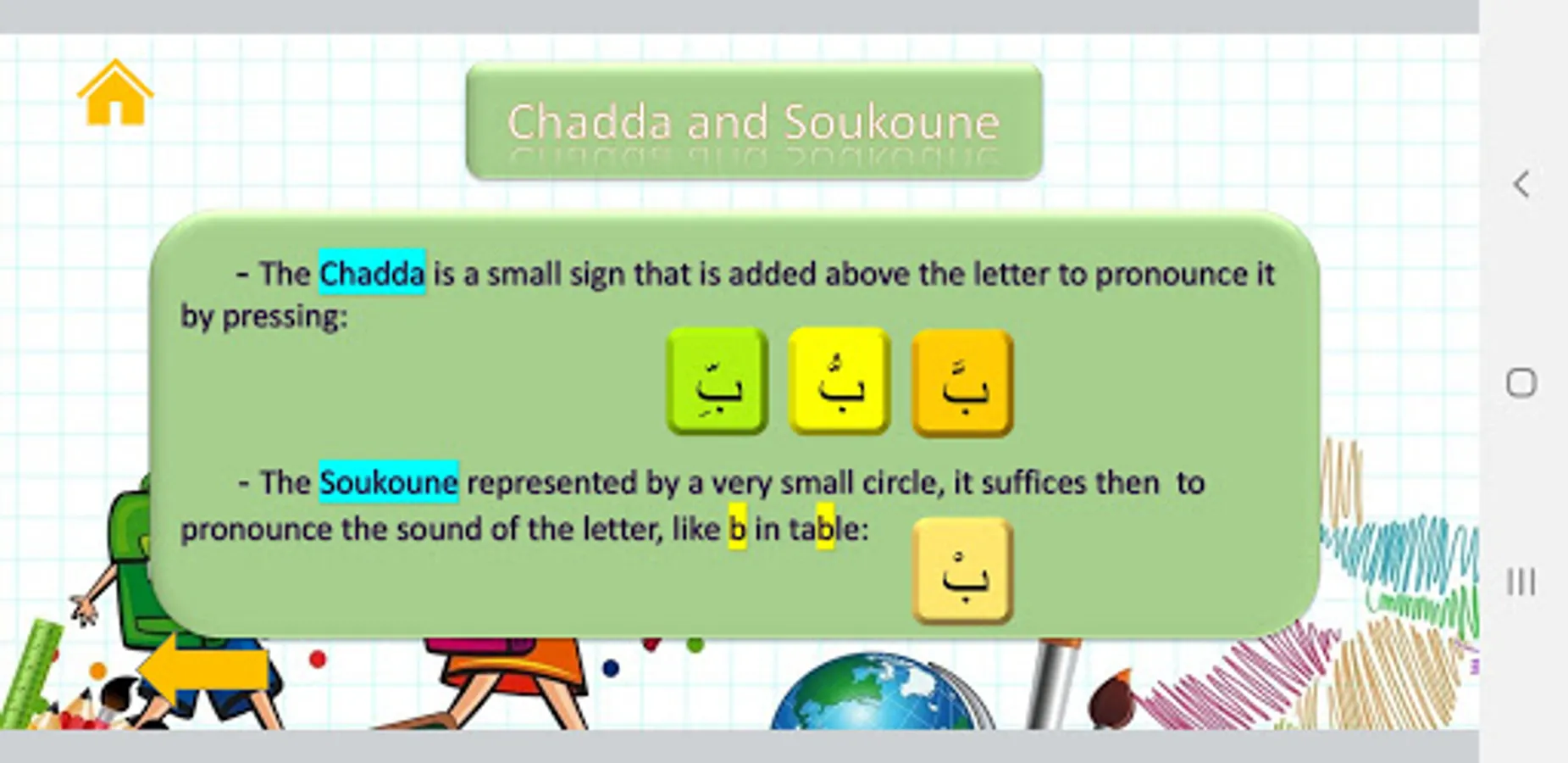 We offer you the first application in its class based on the syllabic method to learn to read fully Arabic with over 500 pronunciations played in audio, thus including all the possible combinations to decode any word.