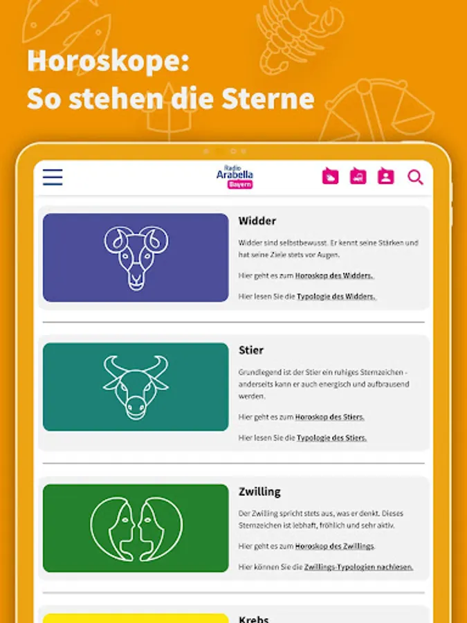 + Arabella Specials: e.g. "Arabella Wiesn Radio" - news and useful tips for the Oktoberfest