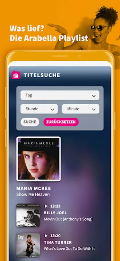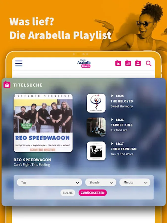 The new Arabella Bayern playlist shows you at a glance which songs are playing in the Arabella Bayern program.
