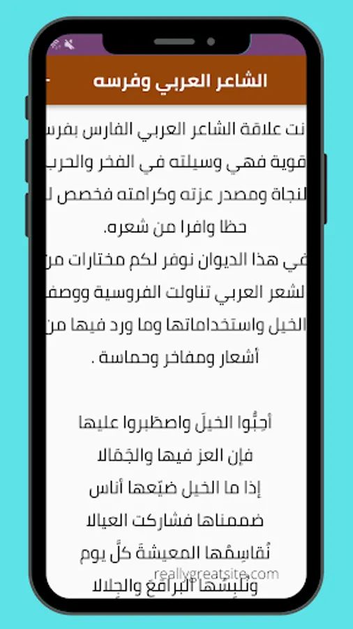 The Arab horse application contains poems from Arabic literature about ancient Arabian horses